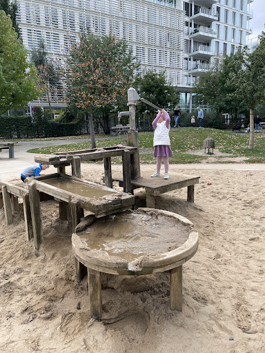 Read moreLocated in the new quarter of Hafencity this is a fantastic playground featuring a great variety of beautiful and well made play equipment. Includes huge swings, pirate ship climbing frame, trampoline, sand pit and massive climbing frame for older kids, hide and seek area (planted hiding place kind of thing), water play equipment, seesaw and paddling pool. A little van selling coffee is on the playground but plenty of other...