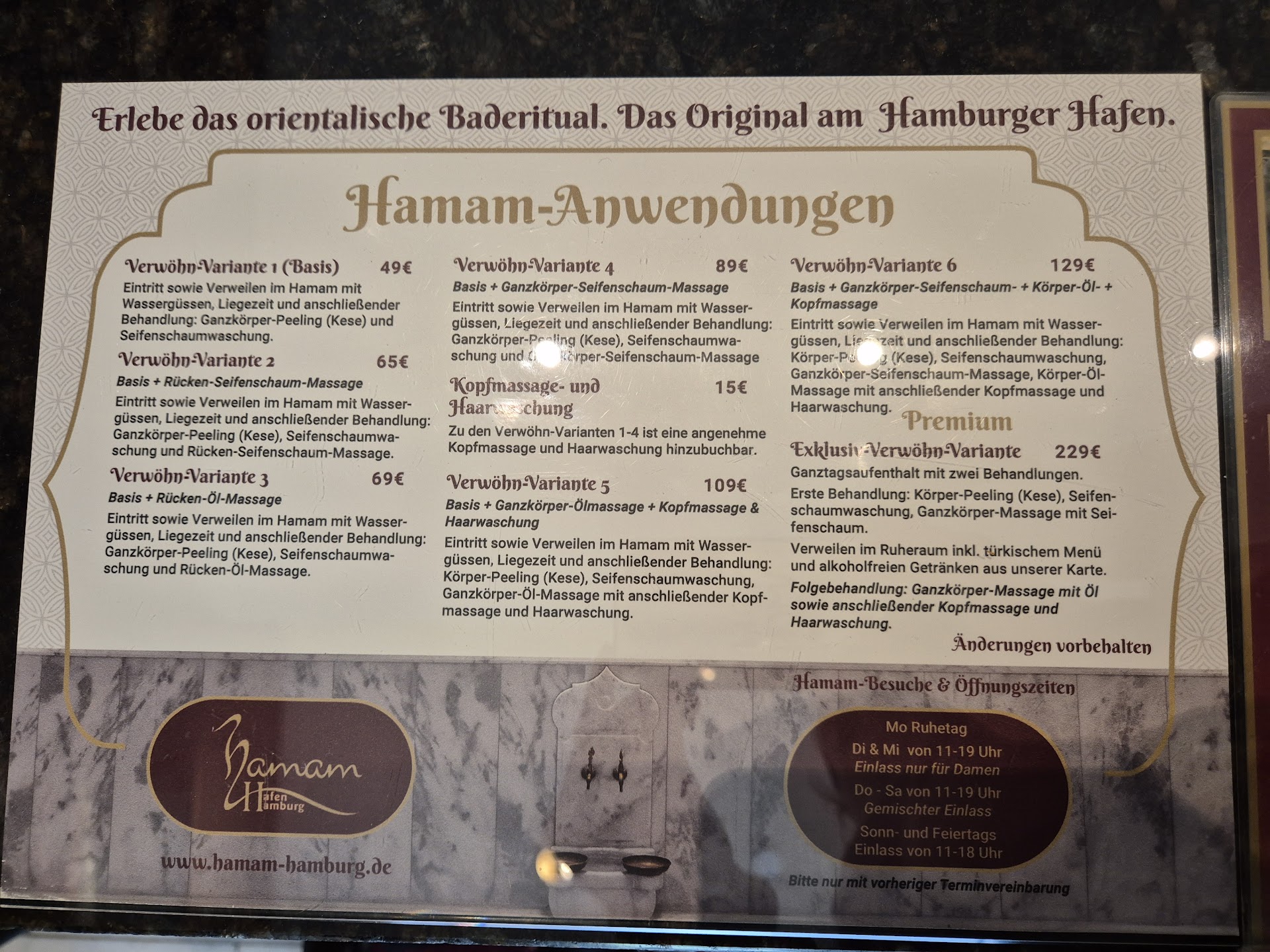 Das Hamam hat meinen Erwartungen in jeder Hinsicht übertroffen. Es ist ein Ort, an dem man dem Alltagsstress entfliehen und sich umfassend verwöhnen lassen kann. Ich kann es jedem empfehlen, der nach einer einzigartigen Wellness-Erfahrung sucht. Ich werde definitiv wiederkommen und freue mich schon jetzt darauf, erneut in diese Oase der Entspannung...
