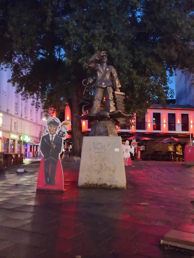 Einer der berühmten Orte auf dem Kiez! Ein must go. Habe mich dort schon als Jugendlicher rumgetrieben Punkt damals gab es dort das Chicago Punkt eine von den bekannten Discos auf dem Kiez Punkt eine von den drei Banden die in den 80er Jahren den Kiez beherrscht haben hatte hier ihr Hauptquartier. Also eine Ecke mit viel Geschichte Punkt dann hat Jörg Immendorff der Ausnahmekünstler hier das La Paloma Punkt eine kiezkneipe die noch heute existiert Punkt im Dorf hat sich einen kleinen Scherz erlaubt und an der Decke der Kneipe Bilder von Künstler Freundin befestigt. Die Topstars der Cineworld vertreten Punkt ein kleines Vermögen unter der Decke der Kneipe Punkt gewidmet war die Kneipe einem Hamburger der den Kiez mit berühmt gemacht hat Punkt Hans Albers Punkt mit seinem auf der Reeperbahn nachts um 0:30 Uhr unvergessen Punkt auch La Paloma war ein Song von ihm. Wie passend ist es das Jörg Immendorf auch das Hans Albers Denkmal gestaltet hat eine Bronze die direkt auf dem Platz steht Punkt Jörg Immendorff trug auch gerne fetten Goldschmuck wie ist in der Zuhälter Zähne üblich war Punkt ein Lude befragt nach diesem Schmuck sagte ganz sachlich: wer hat der lässt raushängen Punkt im Umfeld gibt es viele Kneipen und Restaurants und es ist ein schöner Ort um ein Kitzbühel zu starten Punkt paar Meter weiter ist die Herbertstraße Punkt noch ein Stückchen weiter die Bernhard-Nocht-Straße mit dem erotic art museum Punkt einfachen kleinen Plan ausarbeiten und die bekannten Locations besuchen Punkt kleiner Tipp noch Punkt der bewohnte Bereich vom Kiez ist mega charmant Punkt viele kleine Kneipen Restaurants und kunstläden die darauf warten entdeckt zu werden Punkt line los...