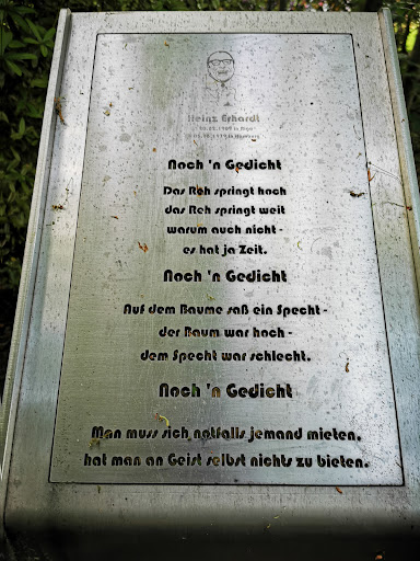Read moreEin schöner, kleiner Park im Hamburger Stadtteil Wellingsbüttel, der nach Heinz Erhardt worden benannt ist. Heinz Erhardt lebte 30 Jahre in Hamburg-Wellingsbüttel. An verschiedenen Stellen des Parks sind Tafeln mit Zutaten von Heinz Erhardt angebracht. Schön wäre es wenn der Park etwas...