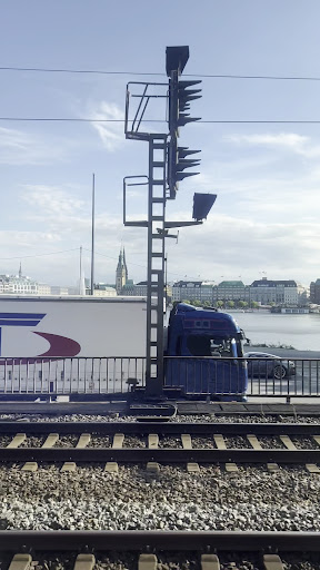Read moreThe Lombard Bridge is a road and rail bridge over the Alster in Hamburg .