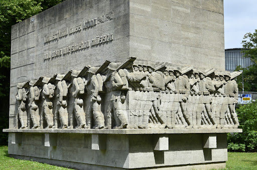 Read moreDas Kriegerdenkmal am Dammtordamm in Hamburg, auch bekannt als "76er-Denkmal", ist ein beeindruckendes, aber zugleich umstrittenes Monument. Es wurde 1936 von dem Bildhauer Richard Kuöhl geschaffen und ehrt die gefallenen Soldaten des Infanterieregiments Nr. 76 aus dem Ersten Weltkrieg. Das Denkmal zeigt eine mächtige, monumentale Soldatengestalt sowie Reliefs von marschierenden Soldaten mit Stahlhelmen – ein kraftvolles, martialisches Bild.