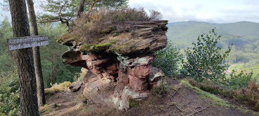 Vom kleinen Parkplatz am Ortsausgang von Darstein (Fahrtrichtung Vorderweidenthal) geht es über die Straße und von dort gegen den Uhrzeigersinn auf den Rundwanderweg Rimbach-Steig. Aufgrund von gut 18 km Länge (wenn man ein paar Felsumrundungen macht) und über 700 Höhenmetern sollte man etwas Ausdauer und eine gewisse Grundkondition mit auf die Strecke nehmen. Ebenso unabdingbar sind gutes Schuhwerk, ein Handy, Wasser und -zumindest bei mir- eine kleine Notapotheke für kleinere Verletzungen. Die ersten etwa 1,7 km geht es sanft und fast unbemerkt 80 Höhenmeter durch den Wald. Von dort führt ein steilerer Pfad weitere 80 Höhenmeter auf den Immersberg, wo wir bei etwa Kilometer 2,2 den ersten, wunderschönen Aussichtspunkt erreichen. Es geht weiter auf dem Bergkamm, vorbei an einem schönen Rastplatz bevor es danach wieder etwas bergab geht. Die nächsten etwa 2,5 Kilometer verlaufen ohne nennenswerte An- und Abstiege über Pfade und Forstwege und führen immer wieder an typischen Pfälzer Felsformationen vorbei. Vor dem Abstieg nach Schwanheim bietet sich die Gelegenheit, einen kleinen Abstecher zum Aussichtspunkt Hockerstein zu machen. Eine lohnenswerte Formation, bei der wir ziemlich weit nach vorne auf den Fels laufen können. Der Abstieg nach Schwanheim ist problemlos, bei etwa Kilometer 5,5 erreichen wir den Ortsrand und die sehenswerte, idyllisch gelegene Lourdesgrotte. Statt in den Ort zu gehen biegen wir nach rechts ab und laufen einige Zeit auf einem asphaltierten Weg bevor wir links auf eine Wiese abbiegen und kurz darauf die Hauptstraße überqueren. Jetzt geht es wieder hinauf (Kilometer 6,7) auf den Berg. Zunächst über einen Feldweg, gemütlich in den Wald hinein und hinauf auf den Nesselberg (Hm 351) wo sich wieder ein schöner Aussichtspunkt befindet. Nun folgt ein weiterer Abstieg und ein gemütliches "Auslaufen" auf einem unspektakulären Waldweg bevor es bei Kilometer 10,9 hoch zum Hühnerstein geht. Diesen erreichen wir nach etwa einem Kilometer, auf dem es ca. 110 Höhenmeter zu bewältigen gilt. Hier kreuzt im Übrigen auch der Hauensteiner Schusterpfad unseren Weg Der Hühnerstein (455,7 m ü. NHN) ist ein Fels, der über eine spektakuläre Metallleiter bestiegen werden kann, eine der beliebtesten Attraktionen der Region. Der Blick vom kleinen umzäunten Plateau ist in alle Richtungen phantastisch. Nach dem Hühnerstein geht es entspannt aber auch abwechslungsreich weiter. Nach etwa 14,5 Kilometern und 700 Höhenmetern erreichen wir die Wasgauhütte Schwanheim. Auf dem Weg dorthin lohnt sich der kleine Abstecher zum Aussichtspunkt Kühlhungerfelsen. Die Hütte bietet ganzjährig von Mittwoch bis Sonntag und an Feiertagen die Möglichkeit zur Rast und zum Genießen von Pfälzer Spezialitäten. Von der Hütte aus sind die letzten gut 4 Kilometer nach Darstein recht ereignislos. Wir laufen ohne jegliche Höhepunkt meist über mittelbreite Waldwege, am Waldrand und über Wiesen zurück zu unserem Ausgangspunkt, dem Parkplatz in Darstein. Eine wirklich schöne, anspruchsvolle Tour mit ein paar kleineren Abzügen. Es gibt einige Passagen auf breiteren, geschotterten Waldwegen. Diesen Untergrund empfinde zumindest ich als ziemlich unangenehm. Auch der asphaltierte Abschnitt nach Schwanheim (mit einigen Radfahrern) hat mir nicht gefallen. Die Beschilderung war in Ordnung aber nicht gut. Insbesondere die gesprühten Symbole an den Bäumen (stilisiertes blaues R) waren oft so verblichen, dass sie teilweise kaum noch zu erkennen waren. Hier wünsche ich mir eine kleine Auffrischung der Markierungen. Die letzten gut 4 Kilometer waren langweilig, ohne jegliche Höhepunkte, Felsformationen oder Aussichtspunkte, Man kommt zwar irgendwie (rechte Hand auf dem Berg zu erkennen) am Haselstein vorbei, wird aber nicht an den Fels geführt. Warum nicht? Glaubt man nicht mehr an konditionelle Reserven der Wandererinnen? Eine richtig tolle Wanderstrecke, der auf den letzten 4 Kilometern aber ganz stark die Puste ausgeht. Von daher und aufgrund der angegebenen Punkte gibt es von mir hier 4 von...