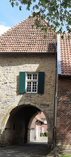 SehenswĂŒrdigkeit im kleinen Ort Nienborg, Gemeinde Heek. Teil der alten Ringburganlage. Man kann das Torhaus nur von auĂen besichtigen.