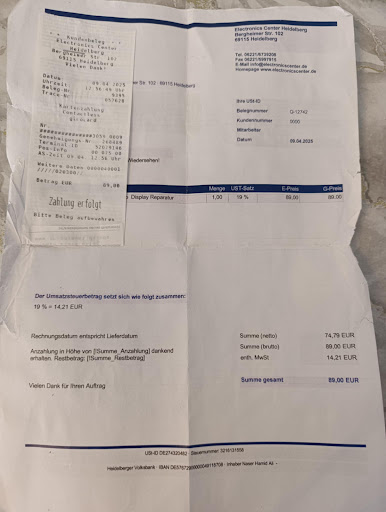 Read moreToller Service, toller Laden und mega befähigt in ihrem Handwerk. Ich hatte mein Samsung S20FE bei 55km/h beim Mountainbiken verloren und auf einem geschotterten Feldweg einmal total zerlegt. Da ich die Daten nicht verlieren wollte, war ich dann in der Hauptstraße von HD und dort in zwei Handy-Läden. Die Meinung dort... "Kaufen Sie lieber ein Neues, da kann man nichts mehr retten". Ein Kollege hat mir dann das Electronics Center empfohlen und siehe da, hier wurde mir in kürzester Zeit für ein wirklich fairen Preis geholfen. Alles repariert. Keine 2h hatte es gedauert. Vorderseite getauscht, Rückseite getauscht und alles ging bzw geht wieder. Wahnsinn! An dieser Stelle nochmal vielen Dank. Euch kann man einfach nur weiterempfehlen. Fünf von fünf Sternen. Klasse...