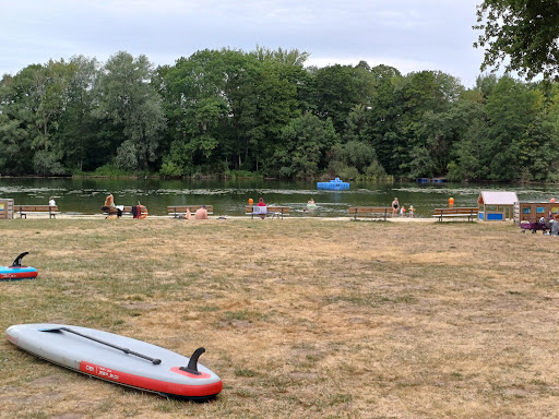 Read moreThe place is nice. A Lot of parking places. The lake is not very deep, with water lilies. The bottom of the lake is muddy, there are algae and various leaves in the water, but everything is natural). The place itself is well-kept, there are several benches, large chess and checkers, a SUP for rent (7€ for half an hour), there is both sand and grass, many trees for shade. Good showers/changing rooms/toilets. On the territory there are a cafe and a kiosk with drinks, ice cream and French fries. Admission...