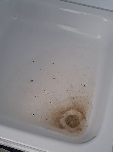 -Der Abfluss war verstopft, so das das Wasser aus dem Abfluss der Duschwanne hochsteigt, wenn in der Küchespüle Wasser abgelassen wird oder der Geschirrspüler abpumpt. Genauso fließt das Duschwasser nicht ab, wenn man duschen wöllte. (Wir haben dann z.b. die Ostseetherme aufgesucht, da wir keine Lust hatten diese Dusche zu benutzen)