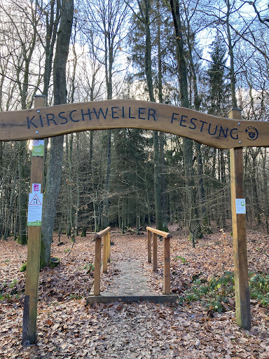 Traumschleife Kirschweiler Festung im Nationalpark Hunsrück-Hochwald. Das Eingangstor ist am Wanderparkplatz hinter dem Golfplatz. Die Strecke ist so ca. 9,3 km lang. Der Wanderweg ist für Fahrradfahrer gesperrt. Alles ist gut ausgeschildert. Die Wege sind wunderschön urig und führen quer durch den Wald. Steine und Wurzeln sind ständig auf der Tour zu finden. Einkehrmöglichkeiten gibt es keine aber auf der ganzen Strecke gibt es unzählige Bänke, einfach Rucksack packen und gemütlich mitten im Wald eine Pause einlegen. Früher scheint es hier mal viel mehr Wasser geben zu haben, aber leider waren alle Quellen und Bächlein trocken. Heute hatten wir zum ersten mal das Gefühl von Herbst, obwohl es noch 28 Grad warm war. Durch den langen, trockenen Sommer war alles vertrocknet und die Bäume und Sträucher hatten schon Herbstfarben...