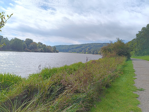 Ein ebener asphaltierter Weg führt um den See herum,...