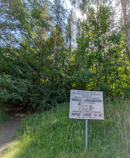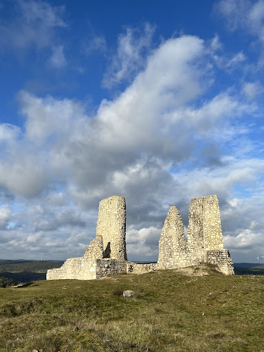 Read moreVon der ehemaligen Burg selbst ist zwar nicht mehr viel übrig aber der Weg hoch lohnt sich definitiv trotzdem! Wenn man gut fit ist braucht man ca. 15 Minuten hoch, mit Kindern oder in gemütlichem Tempo eher 30 Minuten. An sich wäre der Weg mit Kinderwagen befahrbar allerdings gibt es vor dem letzten Teil des Weges eine Barriere aus Steinen mit nur sehr schmalen Durchgängen. Wenn man zu zweit ist kann man den Kinderwagen da mit etwas Geschick aber schon drüber heben. Die letzen 20-30 Meter des Aufstieges sind wirklich ziemlich steil und grobsteinig. Da muss man schauen inwiefern man mit Kinderwagen rauf kommt. Wie schon in anderen Rezesionen beschrieben liegt die Burg ein Truppenübungsplatz. Da es aber ganz an Rand ist wird die Begehung vom Ort aus geduldet. Der Ausblich ist absolut sehenswert. Auf der einen Seite der baulich unberührte Truppenübungsplatz und auf der anderen Seite der Blick über die Dörfer. Da es kein öffentliches Touristenziel ist gibt es natürlich auch keine Möglichkeit dort seinen Müll von mitgebrachtem Proviant zu entsorgen also packt bitte euren Abfall wieder ein und nehmt ihn mit! Es ist jedes mal traurig dort oben den Müll...