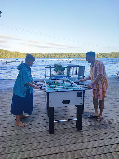 Friendly stuff, an interesting line for waterski or wakeboard, and a not so populated sand beach. They also rent Sup Boards, and they have a great deal if you are an Urban Sports Club member.