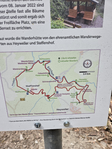 Am Wanderparkplatz bei Heyweiler stehen eine recht große Anzahl an Parkplätzen zur Verfügung. Hier steht auch das Traumschleifen Portal und es wird den Wanderern ein Flyer mit Infos zur Tour zur...