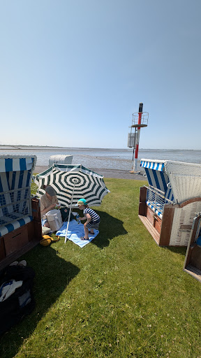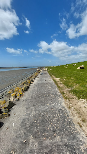 Read moreDer Fußweg vom äußeren Hafen Husums bis zum Dockkoog fängt direkt an einer Straße an. Das ist wenig malerisch, aber dank Fußweg gut passierbar. Erst nach 1 km kommt die Möglichkeit auf einen Weg direkt am Wasser auszuweichen. Dieser führt dann schnurrstracks zum Dockkoog. Habe ca 40 Minuten für eine Strecke benötigt. Am Dockkoog findet man einen Rasenstrand mit Strandkörben vor, von dort geht es direkt ins Meer. Die Lokalität vor Ort hat kleine Gerichte und Getränke im Angebot. Für Kinder gibt es einen Spielplatz. Hat man sich vom Spaziergang erholt, geht...