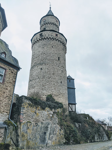 Read moreBei dem rund 42 Meter hohen Hexenturm, dem Wahrzeichen der Stadt Idstein, handelt es sich um den baulich mehrfach veränderten, als Butterfassturm ausgeführten Bergfried der Burg Idstein. Aufgrund seiner exponierten Lage und seiner Höhe prägt er das Idsteiner Stadtbild.