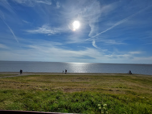 Ein echtes Naturereignis. Jede Menge unterschiedliche Vögel, VogelschwĂ€rme die man beobachten kann und NonnengĂ€nse, also jede Menge WildgĂ€nse. Das Wasser drumherum ist brackwasser also 5 % Salzgehalt Man kann dort sogar schwimmen gehen wobei der Eingang zum Wasser extrem rutschig ist, also eigentlich nicht so gut zu empfehlen jedoch ist eine Einstiegshilfe vorhanden. Das Wasser soll laut dem letzten Test 2023 gute WasserqualitĂ€t sein. FĂŒr mich war der Besuch dieses Ortes ein Erlebnis dass ich nicht missen möchte. Wir waren von den Deich aus zu FuĂ ĂŒber den Weg zu der Bohrinsel gegangen. Es ist aber auch mit dem Auto möglich bis auf die...