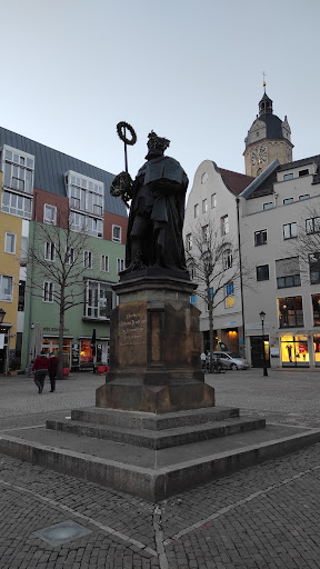 Read moreDer Kurfürst und Gründer der Jenaer Universität: Die Plastik von Johann Friedrich dem Großmütigen hat ihren Platz schon sehr lange Zeit auf dem Marktplatz im Stadtzentrum Jena's. Sie ist eines der Wahrzeichen der Stadt. Studenten versuchen regelmäßig ihr Glück, Pflanzenkränze auf sein Schwert 🗡 zu werfen, in der Hoffnung, dass sie daran hängen bleiben. Vor einiger Zeit musste sein Schwert restauriert werden, da es abgebrochen war. Inzwischen steht der alte Knabe aber wieder in ganzen Glanze am Platze. Er ist auch Teil der Dresdner Ahnengallerie beim...