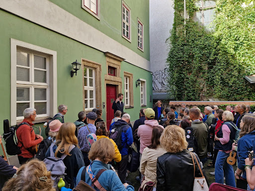 Das tolle an einem Besuch ist aber, wenn der Kurator (Leiter des Romantikerhauses hört sich für mich überhaupt nicht romantisch an) Herr Pommer Zeit für eine Stadtführung oder kurze Geschichte findet. Dann merkt man, dass Romantik nicht nur Märchen sind, sondern der menschliche Anteil an der Zeit des industriellen Aufstiegs und der Aufklärung. In seinen humoristischen Erklärungen erlebt man eine kurzweilige Unterhaltung. Geschichte wird lebendig und man hat Freude am Rumstehen, Schauen und Weiterlaufen. Es lohnt sich also allemahle, dass man nach dem kleinen Haus, mit dem DDR-Brunnen und den 90er Jahre Gehwegplatten sucht. Wer es findet erfährt etwas über knapp 8 Jahre...