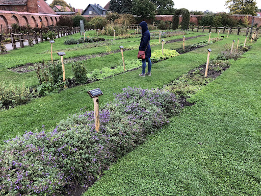 Sehr schöne Kirche und Kreuzgang unbedingt sehenswert, liebevoll gestalteter Ofen und Vorratskeller. Der Garten ist ein sehr schöner Kräuter-, Gemüse-, Bauerngarten mit vielen geflochtenen Hochbeeten und den Bezeichnungen der Pflanzen. Zur Zeit ist auch eins der Storchennester bewohnt. Uns hat der Besuch sehr gefallen, den Abzug gibt es für die falsche Info. Die Mitarbeiter waren sehr freundlich und hilfsbereit! ♿ Der Garten war komplett befahrbar mit Zuggerät oder viel Handkraft. Die Hochbeete sind ca 60-70cm auseinander. Die Wiesenwege waren etwas breiter, mit E-Rollstuhl würde es nur rundherum befahrbar sein oder auf den festen Wegen außerhalb des Gartens. Die Einfahrt in den Garten mit normaler 45 ihrer Rollstuhlbreite und angeschrägten Rädern etwas schmal, da die Beete mit Holz eingefasst sind. Der Hauptweg ist breiter dafür mit einer ca 4cm runden Stufe Einschränkung für Rollstuhlfahrer lt. Inet Rollstuhlrampen in Kirche und Kreuzgang, diese sind auch irgendwie vorhanden aber weiche Klötze zum überwinden der Stufen jedoch nur mit Hilfe und selbst arbeiten oder wenn möglich aufstehen und Stufen selbst überwinden. Uns wurde bis in den Kreuzgang geholfen, dieser hat aber nochmals ca 4x1 + 3 Stufen um die Ecken will er umrundet werden. Dann kommen nochmals ca 4 Stufen mit Geländer zum Herauskommen ebenso wie die aus der Kirche in den Kreuzgang, einfache durchgehende Alurampen oder auch aus Holz würden hier helfen und könnten liegen bleiben ohne den Erhalt zu schädigen. An der Brauerei gab es eine steinerne Rampe. Zum Museum gibt es einen Aufzug die Breite und Länge ist per...