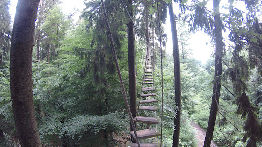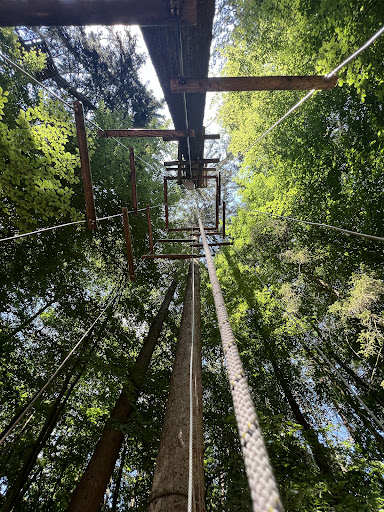 Der Klettergarten liegt mitten im Wald - nein - eigentlich ist er der Wald. Du kletterst von Baum zu Baum, mit vielen verschiedenen (auch was den Schwierigkeitsgrad angeht) Strecken.