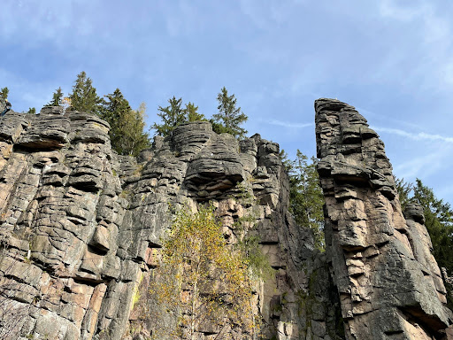Natur pur und das rauschen des Baches, umgeben von einer beeindruckenden Steinformation. Laut Internet geschlossen, aber trotzdem für Wanderer begehbar. Man kann auch bis hoch auf die Steinfelsen, ist aber relativ schwer und der Weg steil. Zu schaffen für agile, oben angekommen beeindruckende Sicht. Naja hauptsächlich auf Wald. 😅 Aber oben kann schön rumgeklettert werden und man sieht mal...