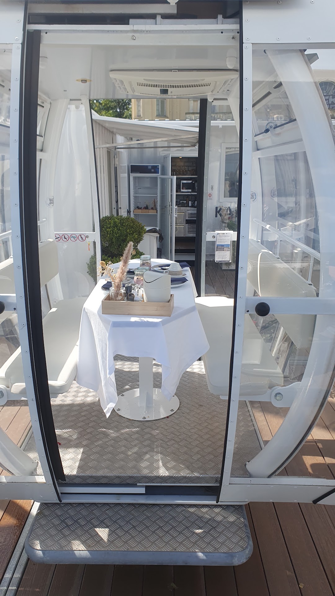 Read moreDas ist ein Erlebnis was Ihr unbedingt machen müsst. Wir waren zum Abendessen hier. In eine Gondel könnt Ihr max. zu viert. Was leider nicht geht, ist 1 EW + 1 Kind (Max. 10). Zumindest kann das nicht gebucht werden. Das ist aber auch der einzige Nachteil. Alle Erwachsenen können aus verschiedenen Vorspeisen und Hauptgerichten auswählen. Es gibt verschiedene Kategorien, wobei sich die Preisunterschiede mir nicht erschließen. Wir haben das einfache Menü genommen. Die Getränke könnt Ihr während der Fahrt via QR Code bestellen. Bei jeder Umfahrung könnt Ihr auch auf das WC oder etwas beim Personal direkt bestellen. Einfach die Hand heben und schon hält die Gondel an. Wir konnten fahren so lange wie wir wollten. Das waren über 2h. Der Sonnenuntergang und Blick auf die Küste hat uns noch eine Weile in der Gondel gehalten. Den Punktabzug gebe ich für 2 Dinge. Als erstes für das muss an 2 Erwachsenen in der Gondel und als zweites, weil für die Kids keine Auswahlmöglichkeit besteht. Alle Kinder bis 10 bekommen Nudeln für 20€. Da ist sicher mehr möglich. Empfehlen kann ich es aber auf jeden...