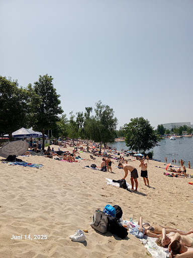 Read moreKlasse Sandstrand, der Blick auf das Staudinger Kraftwerk hat sogar was. Man kann sich auch zu angemessenen Preisen Getränke am Kiosk holen (aber der Eintritt zum Badebereich kostet natürlich auch, 3€ als ich da war). Duschen/WCs sind auch solide.