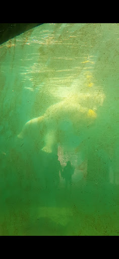 Read moreMan kann es sehen, wie man will, aber vielleicht ist es doch beeindruckender so ein mächtiges Tier fast hautnah selbst zu beobachten, als irgendeine Hochglanzdoku dazu anzuschauen. Vielleicht können sie so besser vermitteln, welchen Verlust es bedeuteten würde, sie ganz zu verlieren. Bedingungen in Gefangenschaft sind bestimmt nie optimal, und das gehege kann natürlich keine freie Wildbahn ersetzen...aber hier besteht für die nun 2 Eisbären als neues Paar immer noch ein recht weitläufiges Gelände mit Pools. Vielleicht gibt es so auch bald mal Nachwuchs. Das Mädchen vergnügt sich zumindest auch unter Wasser. Etwas gepflegter könnte das Ganze trotzdem sein, aber das ist vermutlich eine Frage des Budgets. Wasser und Scheiben waren zumindest ziemlich grün voller Algen.Wenigstens nicht zuviel...