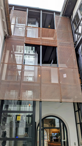 Faszinierend, wie stilsicher in diesem alten, großen Haus alt und neu kombiniert wurden: Originalwände mit weiß gekalkten Dielenböden, modernes Treppenhaus mit schwarzen Metallplatten und Holzstufen oder moderner Aufzug im Innenhof teilweise abgedeckt mit rostigen Streckmetall-Gittern. Ein Audioguide macht die Hausgeschichte mit kurzweiligen Ich-Erzählungen lebendig. Geschickt werden die vielen Räume durch eine Kunstausstellung bereichert. Hinzukommt in der Eingangshalle eine sehr gut sortierte Touristinfo. Alles sehr...