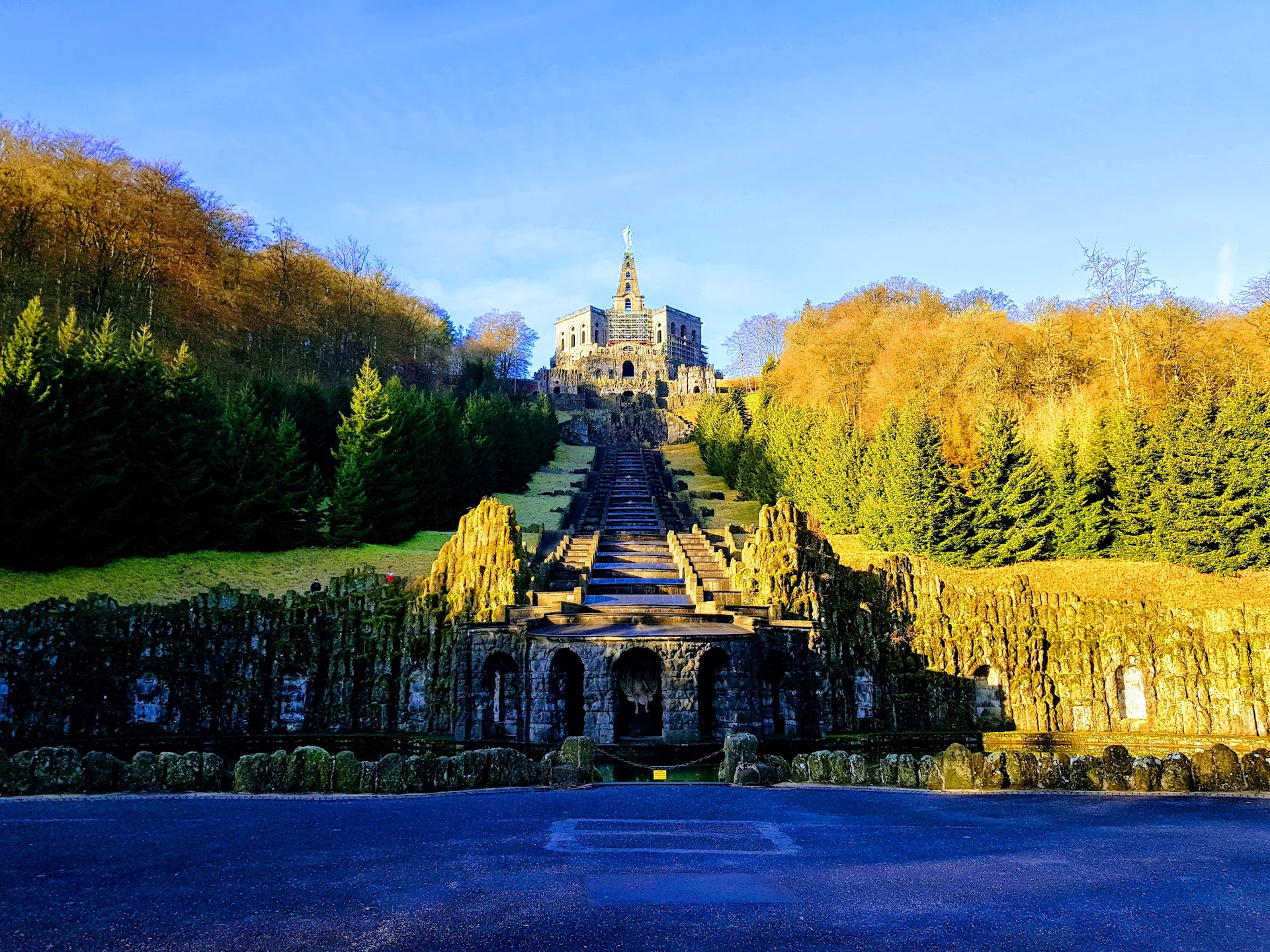 Am Tag unseres Besuches konnte aufgrund von Personalmangel kein Bus-Shuttle bereit gestellt werden, so dass wir lediglich 5,00 € Parkgebühr zahlten und den Weg nach oben zu Fuß antreten mussten. Wir mussten uns ganz schön beeilen, um innerhalb der verbleibenden Stunde nach oben zum Herkules zu gelangen.