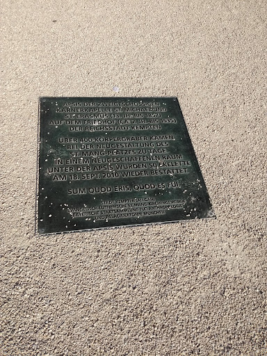Kleiner Ausflug in die Unterwelt von Kempten in die im 13./14. Jahrhundert erbaute Friedhofskapelle, gebaut in einer Variante als Doppelkapelle. Das Erdgeschoss als Kirchraum wurde dem Erzengel Michael geweiht. Und das darunter liegenden Beinhaus, der heutige Schauraum,wurde dem heiligen Erasmus geweiht. Das Beihaus wurde notwendig, da der auf dem heutigen St.- Mang-Platz liegende Friedhof erweitert werden musste. Die dabei zu Tage gekommen Gebeine mussten ja untergebracht werden. Nach Brand des Gebäudes erfolgte ein Neubau als Tonnengewölbe und später beim Umbau der Nachbarkirche wurde die erweiterte Kapelle als Notkirche genutzt. Nach der Reformation übernahm die Reichsstadt die Kapelle und änderte die Nutzung. Es entstand unten eine Trinkhalle und ein Weinkeller. 1857 erfolgte dann der Abbruch und das Gebäude geriet in Vergessenheit. Bei ärchäologischen Untersuchungen wegen Neugestaltung vom St-Mang-Platz wurden dann die Reste freigelegt und so umgebaut, daß eine Besichtigung möglich wurde. Die alten Umrisse der Kapelle werden heute durch ein Bronzeband auf dem Platz verdeutlicht. Alles nachzulesen bei Wikipedia. Im Untergrund hat man jetzt eine Lichtprojektion zur Geschichte und einen Monitortisch mit Fundstücken. Die Gebeine sind in Mauerdurchbrüchen, Fensterähnlich, in...