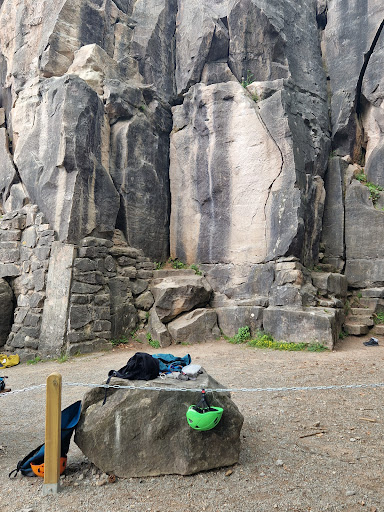 The walk ends at an old quarry which has been turned into a safe rock-climbing wall.