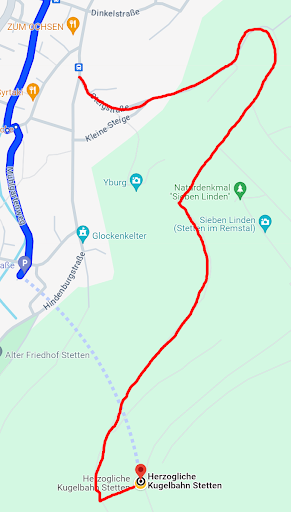 The only issue we had was the parking. There is parking right at the beginning of the track, but our navigation system could not find it. So we ended up parking at the church square of Stetten and walked up. It was a beautiful 20-minute hike that has signs for the Herzogliche Kugelbahn along the way.
