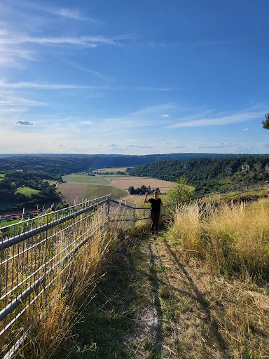 Altmühl-Panoramaweg.....ein richtiges Highlight die Etappe Arnsbergerleite. Mein Ausgangspunkt der Parkplatz am Sportplatz in Arnsberg. Dann der Markierung 2 und 5 Richtung Arnsberger Schloss gefolgt. Hinter der Wallfahrtskirche geht es ziemlich steil nach oben, dann macht das Gelände auf und die Wege trennen sich. Laufe der 2 folgend am Schloss ( hinter dem Schloss liegt die Ruine )vorbei in den Wald. Denke mal nach knapp 100m geht ein gut erkennbarer Weg links von der 2 ab und man läuft auf die Felsen zu. Bereits von hier kann man schon den einen oder anderen Blick auf die Leite erhaschen. Man läuft weiter an der Kante bis zu einem Tor mit dem Hinweis, dass dort Ziegen das Gelände beweiden. Spätestens jetzt sollte man die Markierung des Panoramaweges finden. Innerhalb der Einzäuung weiter der Felskante entlang, man hat mega schöne Blicke ins Tal und auf die Felsen )bis zum Ende der Leite und durch das Tor durch, jetzt wieder auf der 2, dem Schmetterlingsweg der seinen Namen zurecht trägt, Richtung Böhmigen, als der Weg bergab geht, rechts hoch durch den Wald auf das Plateau, am Waldrand rechts wieder 2 und 5 folgend , dann ca 50m rechts auf die Felskante zu durch das Gehegetor links, bis zum nächsten Törle, dann etwa noch 100 m und die Markierung des Panoramaweges sowie Schlaufenweg zeigt den Weg an. Jetzt geht es weniger spektakulär bergab und am Ende stehe ich beim Hotel zum Raben am Ortsrand , der eigentliche Einstieg des Panoramaweges. Eine schöne Wanderung, wer mutig ist und auf die Felsen geht Trittsicherheit und etwas Kondition, geeignetes Schuhwerk nicht zu vergessen. Wunderschöne...
