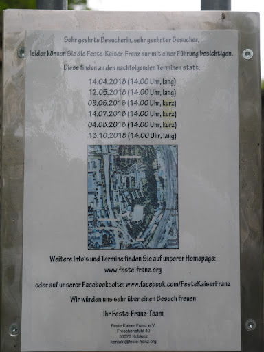 Read more以普鲁士盟友奥地利皇帝命名的弗兰茨皇帝要塞建于1822 年,是普鲁士科布伦茨防御工事的一部分,与对面山上的埃伦布赖特施泰因要塞遥相呼应,围绕莱茵河和摩泽尔河交汇处形成一圈防御工事。在 19 世纪中叶,科布伦茨防御工事被认为是整个欧洲同类防御工事中最大的。 在1922 年被拆除后,1959 年又被炸毁了大部分遗迹。但是主干道的两侧端部、要塞的内部防御和住宿建筑、以及后部的炮塔和住宅塔,都被保留了下来。 自 1997 年以来,要塞建筑群遗址一直由 Feste Kaiser Franz eV协会负责管理。 在弗兰茨要塞公园于 2022...