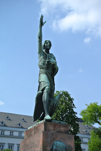 Read moreΤο μνημείο Joseph Görres στο Koblenz ανεγέρθηκε προς τιμή του δημοσιογράφου Joseph Görres , ο οποίος γεννήθηκε στην πόλη. Aπεικονίζει έναν διασκελισμό κατά μήκος του Ρήνου από έναν νεαρό άνδρα που κοιτάζει αλλού με το δεξί του χέρι σηκωμένο. Στο αριστερό χέρι κρατά ένα βιβλίο μπροστά στο στήθος του. Η φιγούρα πλαισιώνεται στο δεξί χέρι από έναν αετό και αποτελεί την ενσάρκωση μιας ερμηνείας των προειδοποιητικών εκκλήσεων του Joseph Görres για ελευθερία και δικαιοσύνη. Το μνημείο βρίσκεται πίσω από το Εκλογικό Μέγαρο στο Πάρκο του Ρήνου και εγκαινιάστηκε στις 24 Ιουνίου 1928. Το χάλκινο γλυπτό σε βάση από πορφυρίτη Rochlitz φιλοτεχνήθηκε από τον γλύπτη του Ντίσελντορφ Richard Langer. Το μνημείο Joseph Görres αποτελεί μέρος της Παγκόσμιας Κληρονομιάς της UNESCO στην κοιλάδα του Άνω Μέσου Ρήνου...