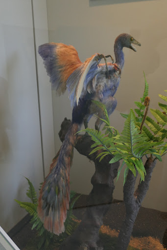 Das GeoFoyer im Kalkturm befindet sich in unmittelbarer Nähe zur berühmten Korbacher Spalte. Dieser längere Riss im Gestein ist bekannt für Knochenfragmente von sogenannten Synapsiden. Bei den Synapsiden handelte es sich nicht etwa um Dinosaurier, sondern um entfernte Verwandte der Säugetiere, die in der Region vor etwa 258 Millionen Jahren lebten. Entsprechend erwartet man natürlich eine ansprechende Präsentation über die Lebenswelt im Permzeitalter und die Besonderheiten der Korbacher Spalte. Allerdings erfährt man im Turm nur etwas über den Korbacher Kalksteinabbau und bekommt einen ganz allgemein gehaltenen Abriss über die Entwicklungsinnovationen in 550 Millionen Jahren Evolutionsgeschichte auf dem Planeten Erde. Der Schwerpunkt liegt auf sogenannten Mosaikformen, also Übergangsformen zwischen zwei Tiergruppen wie zum Beispiel den Archaeopteryx. So weit so (noch) in Ordnung. Regelrecht ärgerlich fand ich aber die Überschriften "Von den Fischen zu den Amphibien und Reptilien" und "Von den Reptilien zu den Säugetieren". Solche Titel suggerieren, dass Evolution eine zielgerichtete Entwicklung gewesen sei, die auf die Säugetiere hinauslief - mit dem Menschen als vermeintlichem Höhepunkt des Lebens. Am Ende der Ausstellung steht ein Australopithecus, der uns als Übergangsform zwischen Mensch und "Affe" verkauft wird. Das ist etwas irreführend. Außerdem stehen Fische NICHT auf einer niedrigeren Evolutionsstufe als Amphibien, weil die Fische am "Landgang" "gescheitert" wären. Die Fische sind in ihrer Entwicklung und ihren Anpassungsleistungen nicht stehen geblieben gegenüber anderen Tiergruppen. Diesen Aspekt hätte man deutlich herausstreichen müssen. Außerdem wird es so dargestellt, dass die Säugetiere "im Schatten der Dinosaurier" dahinvegetiert seien. Auch zur Zeit der Dinosaurier gab es eigentlich sehr wohl eine große Artenvielfalt an Säugetieren - auf Bäumen, in der Erde, im Gleitflug und teilweise auch als Dinobabys und Dinoeier fressende Jäger. Das "Warmblütigkeit" den Säugetieren einen Vorteil gegenüber den Dinosauriern verschafft haben soll, ist mir auch neu. Inzwischen ist doch Stand der Forschung, dass auch einige Dinosaurier und natürlich die Vögel ebenfalls ihre Körpertemperatur unabhängig von der Außentemperatur halten können. Es gibt keine jeweils in einer Zeit "vorherrschende Tiergattung". Das Konzept der Ausstellung sollte nochmal überarbeitet werden. Besser gefiel mir der Teil über den Kalksteinabbau inklusive eines Modells zur Veranschaulichung des Geländes, denn ohne Steinbruch wäre uns auch nichts über die Fossilen bekannt. Kalk begegnet uns auch nicht nur in der Bauindustrie. Es kommt in sämtlichen Produkten vor, bei denen wir nicht damit rechnen würden. Ein Trinkglas beispielsweise benötigt Kalk als Härtemacher ebenso wie die Zahnpasta oder Kosmetikprodukte. Im Radiergummi dient das Kalkpulver als Scheuermittel. Auch die Schale eines Hühnereis, Korallen und Schneckenhäuser - alles besteht aus Kalk, wie eine Vitrine anschaulich darstellt. Ach ja; Es gibt nur einen Kassenautomaten, um den Eintritt zu bezahlen (1 Euro). Die Münze sollte man passend...
