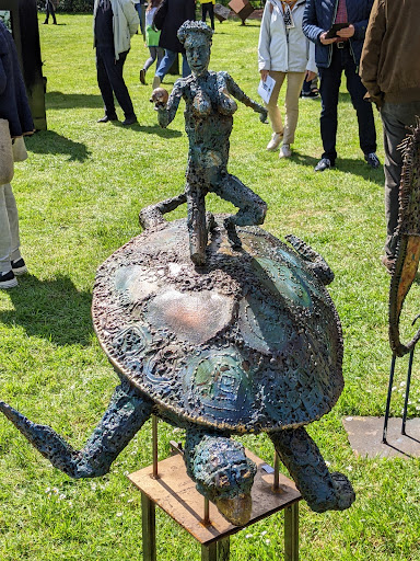 Diese Präsentation einer Vielzahl von Ateliers aus ganz Deutschland verdient höchsten Respekt. Das Wetter am 30. April 2023 war perfekt... dementsprechend strömten am 2. Tag der Ausstellung schon am späten Vormittag hunderte Kunstbeflissene in diese wunderschöne gepflegte Parkanlage, die auch dem Botaniker reiflich Anschauungsmaterial in akurat gepflegten Rabatten bietet....einer der wenigen Orte, die Krefeld für mich noch liebenswert macht. Es gab Kunst aus Holz, Glas, Kupfer uvm...die Fotos vermitteln einen Eindruck von der Fantasie der Kunstschaffenden, wobei einige Exponate von Stil und Preis sich eher an sehr solventes Publikum richteten... vormals beliebte Rostobjekte waren ebenso wie Mobiles aus rostfreiem Edelstahl in der Minderheit. Aber auch für kleines Geld gab es Souvenirs: Blüten aus Glas, die im Normalgarten sehr dekorativ wirken. Ein Besuch, der jedenfalls lohnt...auch der Eintrittspreis erscheint mir angemessen. Bei den meisten Ausstellern konnte man sich kostenfrei mit schön gestalteten Fotokarten bedienen teilweise mit aufwändig gestalteten Katalogen. Es gab nach meiner Erfahrung keinen Aussteller, der ein Fotografierverbot verhängt hatte -wie vormals- sehr positiv !