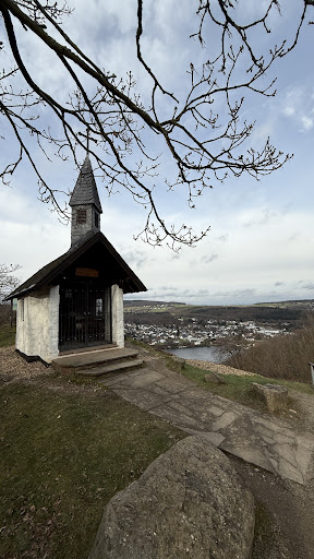 Ein wunderschöner Platz ( vor der Kapelle ) zum Verweilen ( mit Käse Brot und wein ) und einer tollen Aussicht auf Obermaubach und den Dorf eigenen Weinberg .... Dafür ein " Lob " an die Arbeitsgemeinschaft von Obermaubach die so etwas...