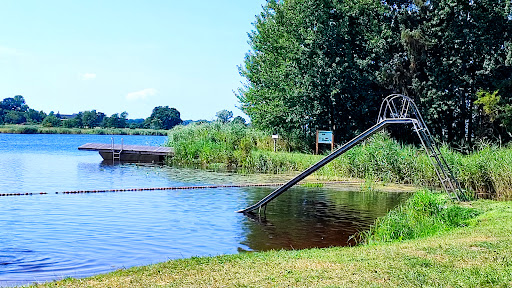 Read moreDer Badebereich ist abgegrenzt und der Boden mit Sand aufgefüllt, so dass man nicht durch Schlick laufen muss. Es gibt eine Rutsche und Sitzmöglichkeiten. In der Hütte, die vor Regen schützt stehen ebenfalls Tisch und Bänke. Schatten findet man unter den vielen Bäumen. Wer nicht mehr schwimmen mag, kann Volleyball oder Federball spielen, dafür ist ein Netzt aufgespannt. Besonderen Spaß macht der große Steg/Insel mit Leiter von der man aus ins Wasser springen kann. Eine der besten Badestellen in unserer Gegend, wir haben hier sogar schon einmal...