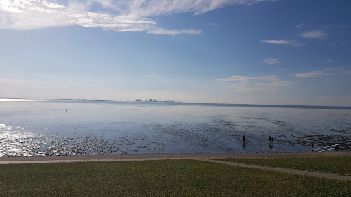 Badestrand ist sicher nicht wirklich der passende Begriff, aber Badestelle an der Nordsee passt besser. Bei Strand stellt man sich einen Sand- oder Kieselstrand vor, den es hier nicht gibt. Vielmehr sitzt man auf dem Deich, der Grasbewachsen ist und kann über eine Treppe mit Geländer direkt in die Nordsee steigen, voraus gesetzt es ist keine Ebbe. Aber auch das ist kein Problem, denn als Alternative zum Baden kann man das Watt erkunden. Hier werden auch Führungen ins Watt angeboten, die sehr gern angenommen werden und viel über das Watt erzählen, diese sind allerdings kostenpflichtig und man muss sich zuvor anmelden! Die Preise für eine geführte Wattwanderung sind aber absolut in Ordnung! Die Parkplätze vor dem Deich sind wie fast überall kostenpflichtig, jedoch von der Größe her ausreichend. Es gibt auch für das leibliche Wohl einen kleinen Kiosk am Parkplatz. Meine Empfehlung für ein Bad in der Nordsee oder eine interessante...