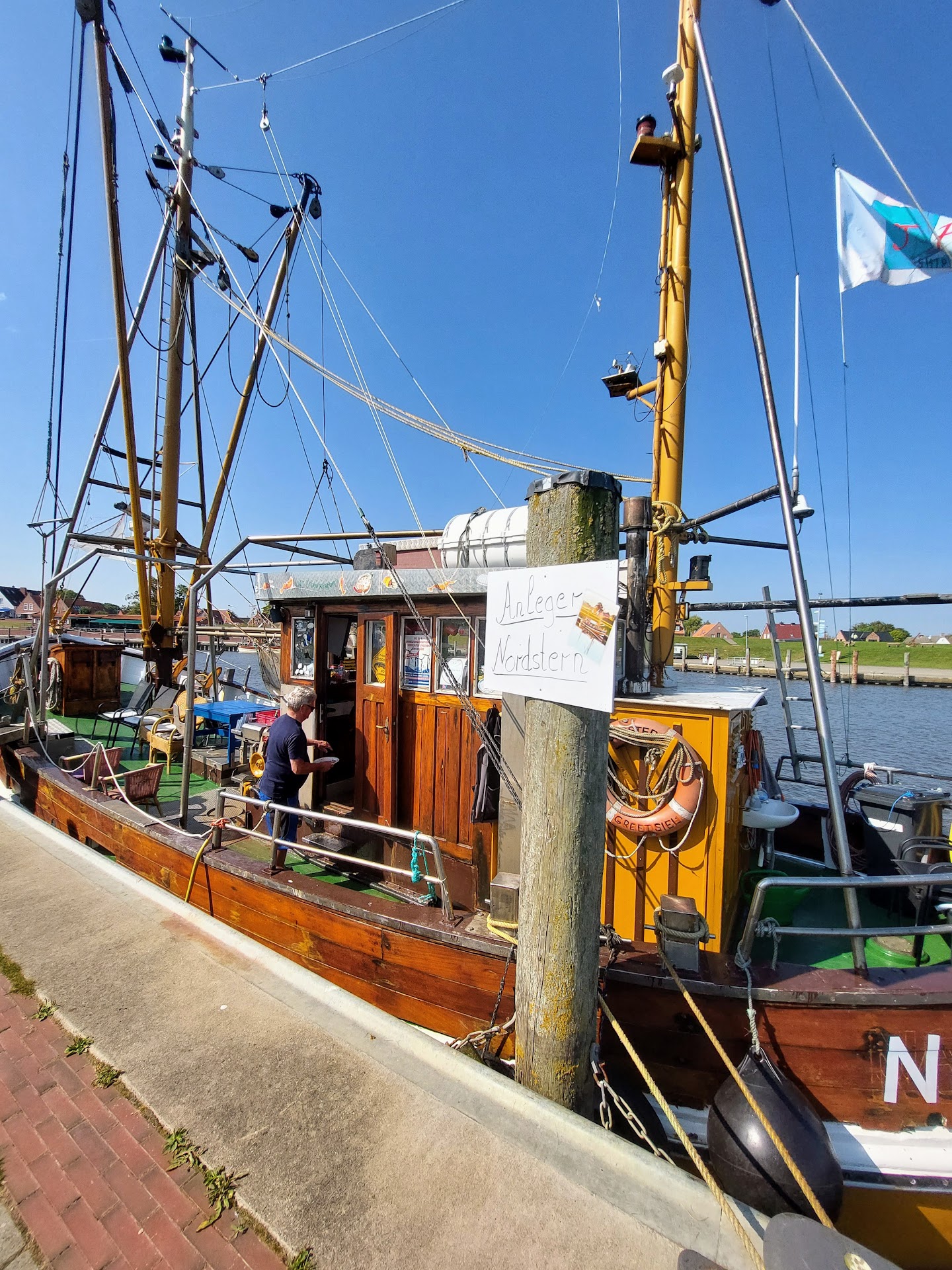 Man kann sich frei auf dem Schiff bewegen und alles ansehen, einschl. Brücke. Hinten am Kutter ist sogar eine kleine Toilette.