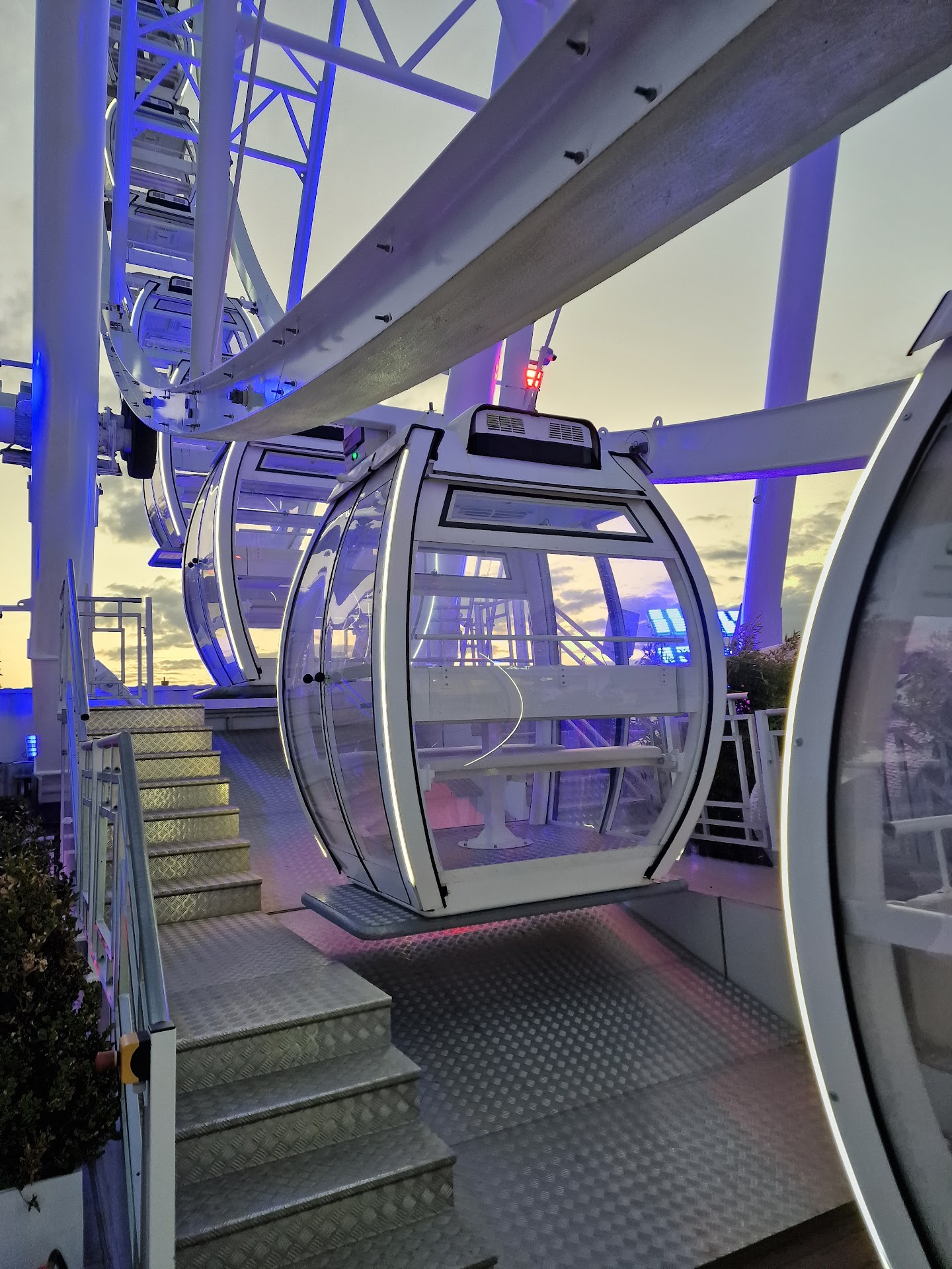 Read moreDas ist ein Erlebnis was Ihr unbedingt machen müsst. Wir waren zum Abendessen hier. In eine Gondel könnt Ihr max. zu viert. Was leider nicht geht, ist 1 EW + 1 Kind (Max. 10). Zumindest kann das nicht gebucht werden. Das ist aber auch der einzige Nachteil. Alle Erwachsenen können aus verschiedenen Vorspeisen und Hauptgerichten auswählen. Es gibt verschiedene Kategorien, wobei sich die Preisunterschiede mir nicht erschließen. Wir haben das einfache Menü genommen. Die Getränke könnt Ihr während der Fahrt via QR Code bestellen. Bei jeder Umfahrung könnt Ihr auch auf das WC oder etwas beim Personal direkt bestellen. Einfach die Hand heben und schon hält die Gondel an. Wir konnten fahren so lange wie wir wollten. Das waren über 2h. Der Sonnenuntergang und Blick auf die Küste hat uns noch eine Weile in der Gondel gehalten. Den Punktabzug gebe ich für 2 Dinge. Als erstes für das muss an 2 Erwachsenen in der Gondel und als zweites, weil für die Kids keine Auswahlmöglichkeit besteht. Alle Kinder bis 10 bekommen Nudeln für 20€. Da ist sicher mehr möglich. Empfehlen kann ich es aber auf jeden...