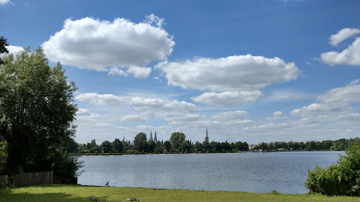 Read moreGroße, saubere Wiesen laden zum Sonnenbaden ein. Bei zuviel Sonne bietet ein lockerer Baumbestand schattige Plätze. Die Wege im Park bieten einen wunderschönen Blick auf die Wakenitz und die Lübecker Altstadt (Foto-Tipp: Sonnenuntergang über der Altstadt!). Jogger kommen leicht auf eine ebene Rundstrecke von 2 Kilometern. Wenn man seinen Lauf durch den nur 200 Meter im Norden des Drägerparks gelegenen Stadtpark fortsetzt, sind es sogar 4 Kilometer Rundweg im Grünen. Das Highlight im Park ist das voll ausgestattete Naturschwimmbad mit Schwimmer- und Nichtschwimmerzone im Fluss, Wasserrutschen und Strand. Am Paddelpoint werden Kajaks und Ruderboote vermietet. Ein Kiosk versorgt die Besucher mit Eis und Getränken und bietet Kaffee und Kuchen. Falls der Kiosk geschlossen ist, ist mein Tipp der Minimarkt und das Bistro der AVIA-Tankstelle am östlichen Parkrand (Psst: dort gibt es auch saubere WCs). vor dem so genannten "Tor der Hoffnung" findet sich eine weitere große Wiese mit Wasserblick, die auch gerne zum Grillen genutzt wird. Ein großer, durch Bäume etwas abgeschotteter Kinderspieplatz rundet das Bild dieses tollen Parks ab. Der Park hat eine "eigene" Bushaltestelle namens "Drägerpark". Autofahrer finden rund um den Park allerdings nur Stellplätze in den umliegenden...