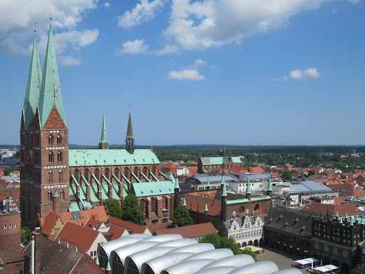 Read moreOut of 7 spires that dominate Lubeck skyline, two of them belong to St. Mary's Church. The Church was built in a time frame of 100 years between 1260 and 1350, replacing the 1200's smaller Chapel. Lubeck's St. Mary's is considered a cornerstone of German Gothic brick Churches. It was built according to French Gothic Churches with outer supporting arches but with use of bricks instead of stone. Likewise, the interiors feature the world's tallest brick vaults. St. Mary's suffered a total destruction in WWII, but was rebuilt shortly after the war. Two huge bells which fell from the Tower during the bombing are kept in one of the Chapels inside. TIP: You wont notice the St. Mary's sheer size from the ground as it's packed in downtown area. To appreciate it's size observe it from St. Peters tower which has the best city views.