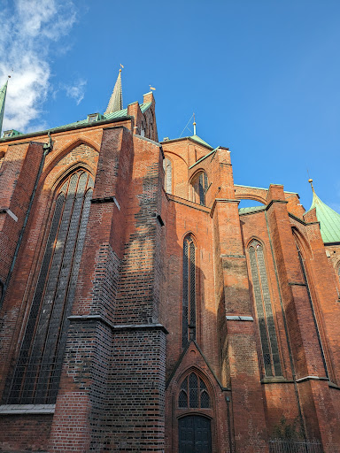 Marienkirche is the third-largest church in Germany, and one of the five large Gothic brick churches in Lübeck. The interior is stunning and learning the history of it was so interesting. During an air raid, a lot of the church was destroyed but it's been beautifully restored. During my time at the church, they were restoring another facade as well. There is a reconstruction of the Danse Macabre, and also some beautiful reliefs of the Last Supper and some statues of Mary, Gabriel, etc. I'm a huge fan of Bach and I was delighted to read that Bach may have come to Marienkirche to play the now-destroyed Totentanzorgel (Danse Macabre organ). I believe they also have services in Marienkirche, although I went on a weekday so I'm not 100% positive. Based on signage, I would say so. I recommend stopping in to learn about the history of Lübeck and the church, or even to sit in on a service! I'm going to come back perhaps to see the other...