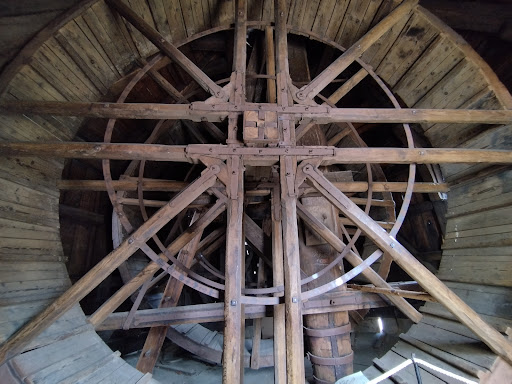 The crane is constructed of a load-bearing wood framework.
