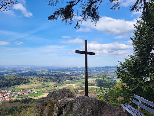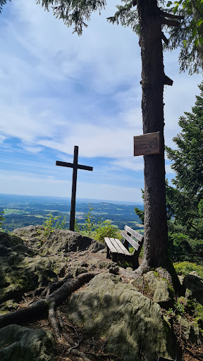 Wunderschöner Ausblicksfelsen mit kleinem Gipfelkreuz und Bank zum verweilen...der der Rundwanderweg 54...