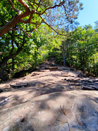 From the parking lot, the rock can be reached in 15-20 minutes via a steep forest path. The climb is worth it. The view over the Pfälzer Forest and Trifels Castle is fantastic. On a clear day, you can see the French Vosges...