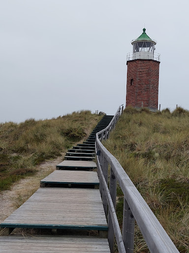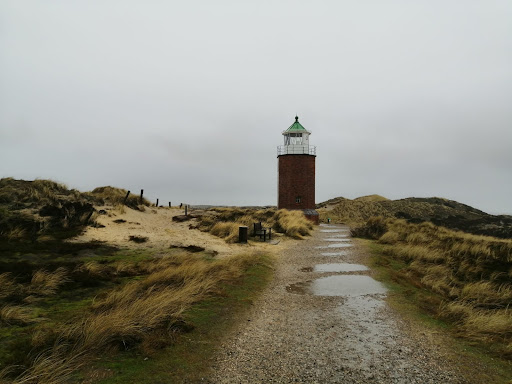 Ein achteckiger Backstein-Zwerg, der seit 1913 auf den Dünen von Kampen wacht, als hätte er sich selbst zum Leuchtturm des kleinen Mannes befördert. Dieser früheste Beton‑Leuchtturm an deutschen Küsten sendete einst ein weiß‑rot‑grünes Signal alle sechs Sekunden – zur Warnung vor Sandbänken im Lister Tief. Heute schweigt er, restauriert und angestrahlt, eher Tagessichtmarke als Seebär auf Wache. Wer über die Dünen stapft, spürt seinen steinernen Humor – und versteht: Manche Wächter brauchen kein Feuer, um Geschichten...