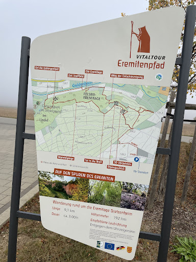 Read moreDer Eremitenpfad ist ein schöner Rundwanderweg. Festes Schuhwerk sollte man aber unbedingt haben, da es immer mal den Buckel hoch geht und es oft etwas rutschig ist. Der Rundwanderweg ist abwechslungsreich. Es geht durch Weinberge, Schluchten und Bachtäler. Sehr pittoresk. Hin und wieder hätten wir uns eine eindeutigere Beschilderung gewünscht. Da waren wir aber wohl nicht die einzigen. Wir haben mit kurzen Trinkpausen und Aussichtgeniessenpausen ca. 3 h gebraucht. Die Eremitenhöhle war leider wegen COVID-19 nicht zur Besichtigung geöffnet, was der schönen Tour aber keinen...
